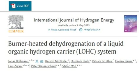 Safe and efficient storage is essential for a hydrogen-based economy, with liquid organic hydrogen carriers (LOHCs) enabling reversible storage. This paper describes the successful use of the exhaust gas stream from a porous burner to provide the heat for the endothermic dehydrogenation of hydrogen-rich LOHCs. A focus is placed on the dynamics of the dehydrogenation unit at a maximum hydrogen power of 3.9 kW.