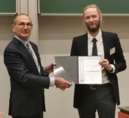 Dr. Florian Bauer was awarded the MegaWATT Research Prize 2023 of the Scientific Working Group Technical Thermodynamics for his dissertation “Investigation of Soot Formation by Optical Diagnostics: From Precursor Measurement to 3D Particle Sizing”. The prize is awarded for the best dissertation or postdoctoral thesis in technical thermodynamics in the German-speaking world. The prize was awarded by the WATT Chairman, Prof. B. Atakan, at the Thermodynamics Colloquium 2023 in Hannover.